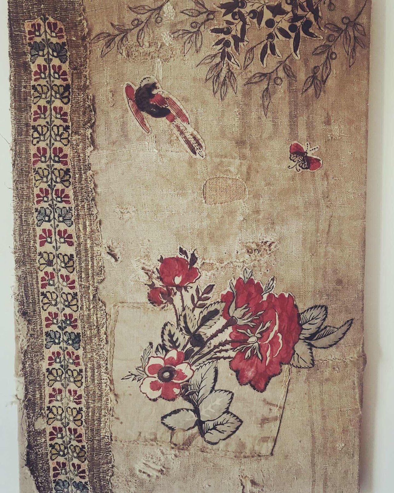Different from my other work I've produced (no indigo!) but with the same ethos of reusing antique textiles and celebrating its imperfections and beauty.